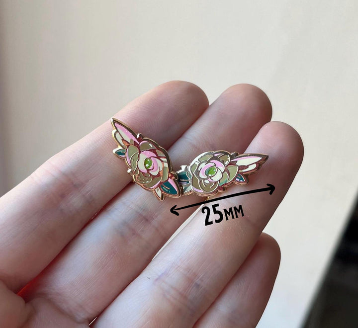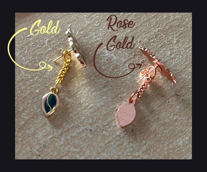 The earrings, Aphrodite's Roses, are inspired by Aphrodite's jewelry. They also have some small screen-printed details for that extra touch, and feature a detachable backing chain which can be used to customize your look. You can wear the earrings without the chain, one with the chain, or both with the chain. You can even attach the chain to other earrings, such as my previous earring set, Wreaths from Tartarus!